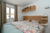 Edifiée en 2000 sur un terrain plat de 444 m2, elle possède un bel espace de vie avec cuisine ouverte sur le séjour, trois chambres, une salle d'eau et un WC.