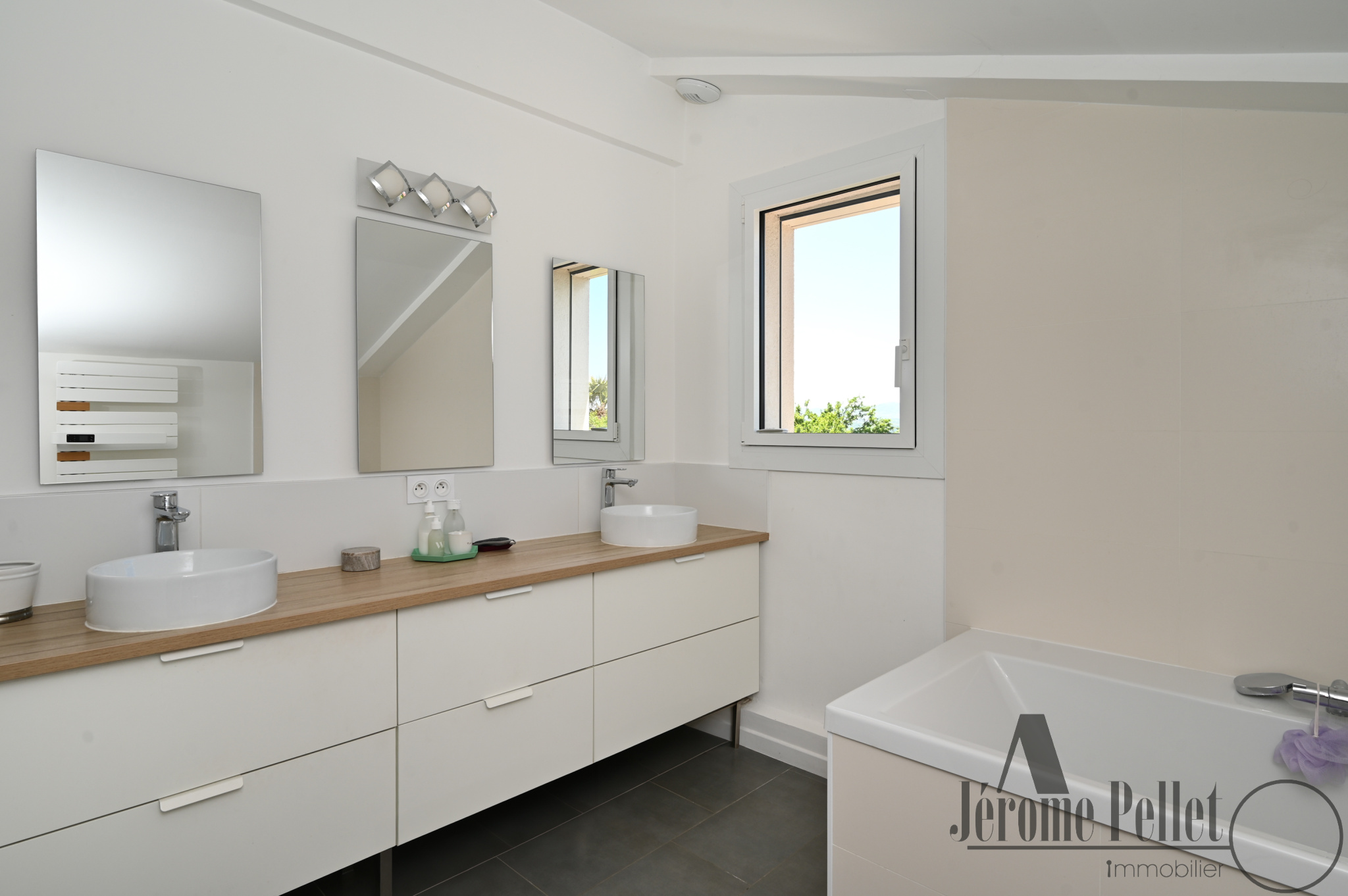 - Grande Salle de bain avec douche, baignoire, double-vasque et rangements